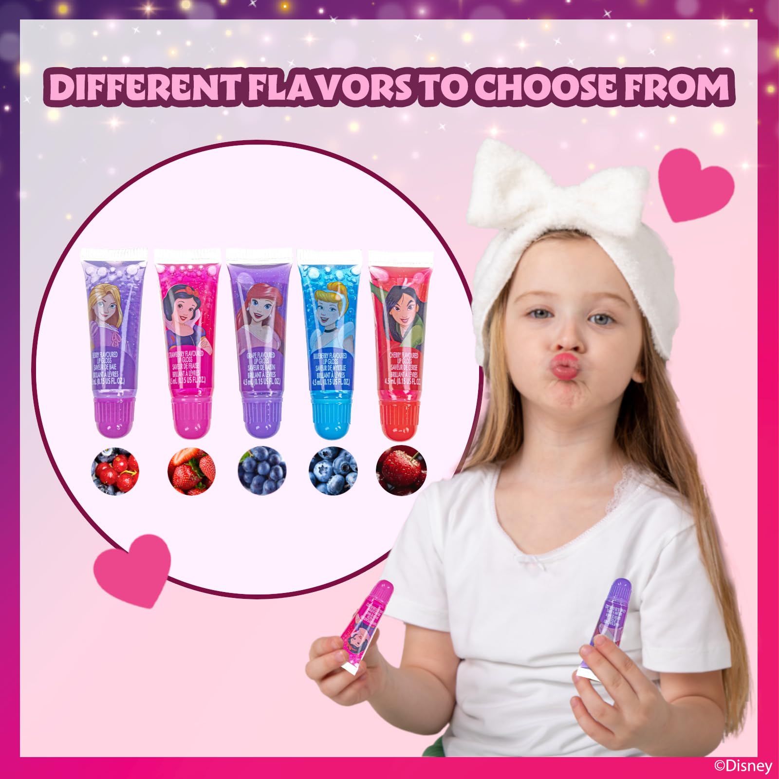 Disney Princess Sparkly Cosmetic Makeup Set for Girls with Lip Gloss Nail Polish Nail Stickers 11 Pcs Perfect for Birthday Gift by Townley Girl