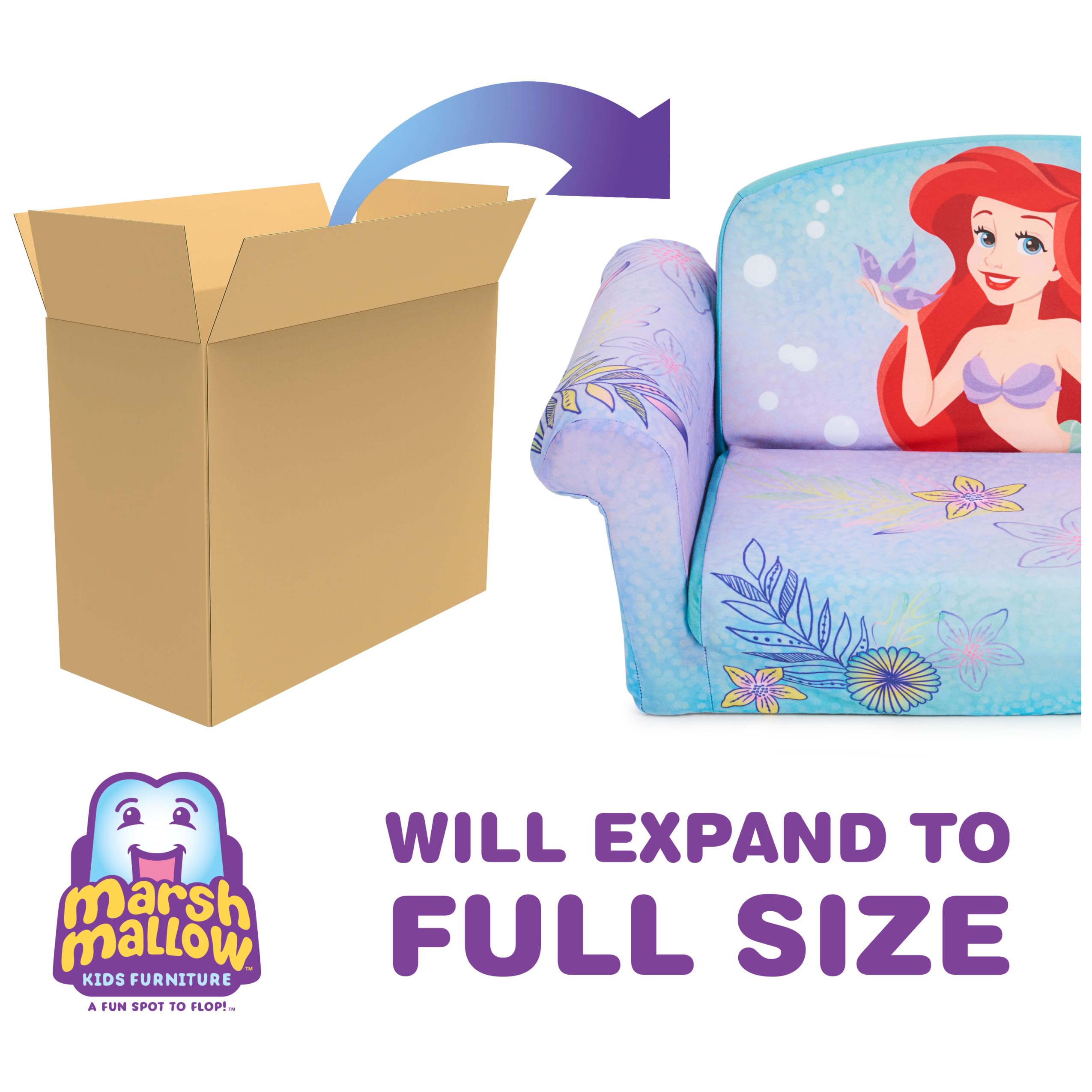 Marshmallow Furniture, Children's 2-in-1 Flip Open Foam Compressed Sofa, Disney's The Little Mermaid—