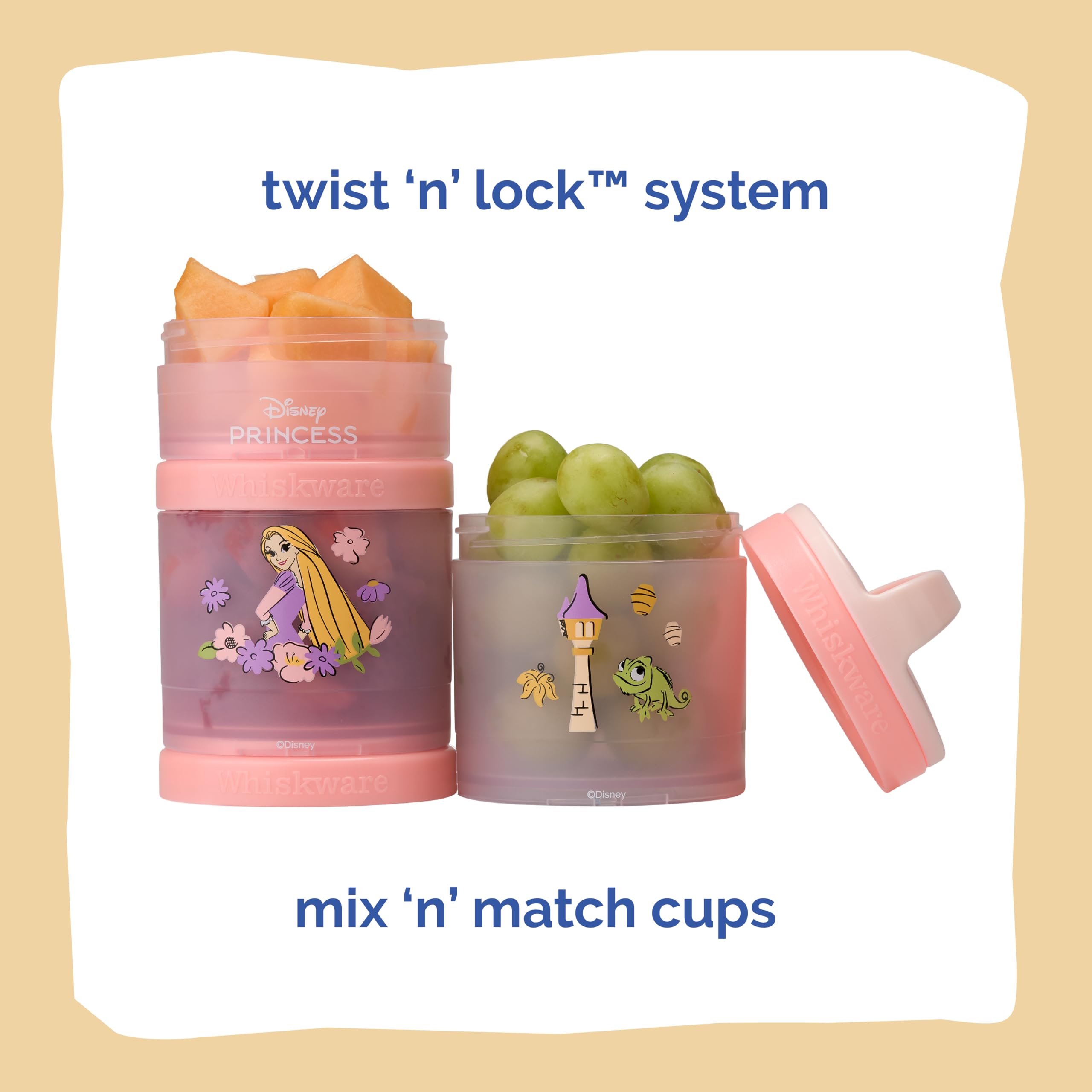 (Rapunzel) DiSNEY PRINCESS Whiskware Stackable Snack Pack - 3 Jar + Handle - White/Pink/Purple