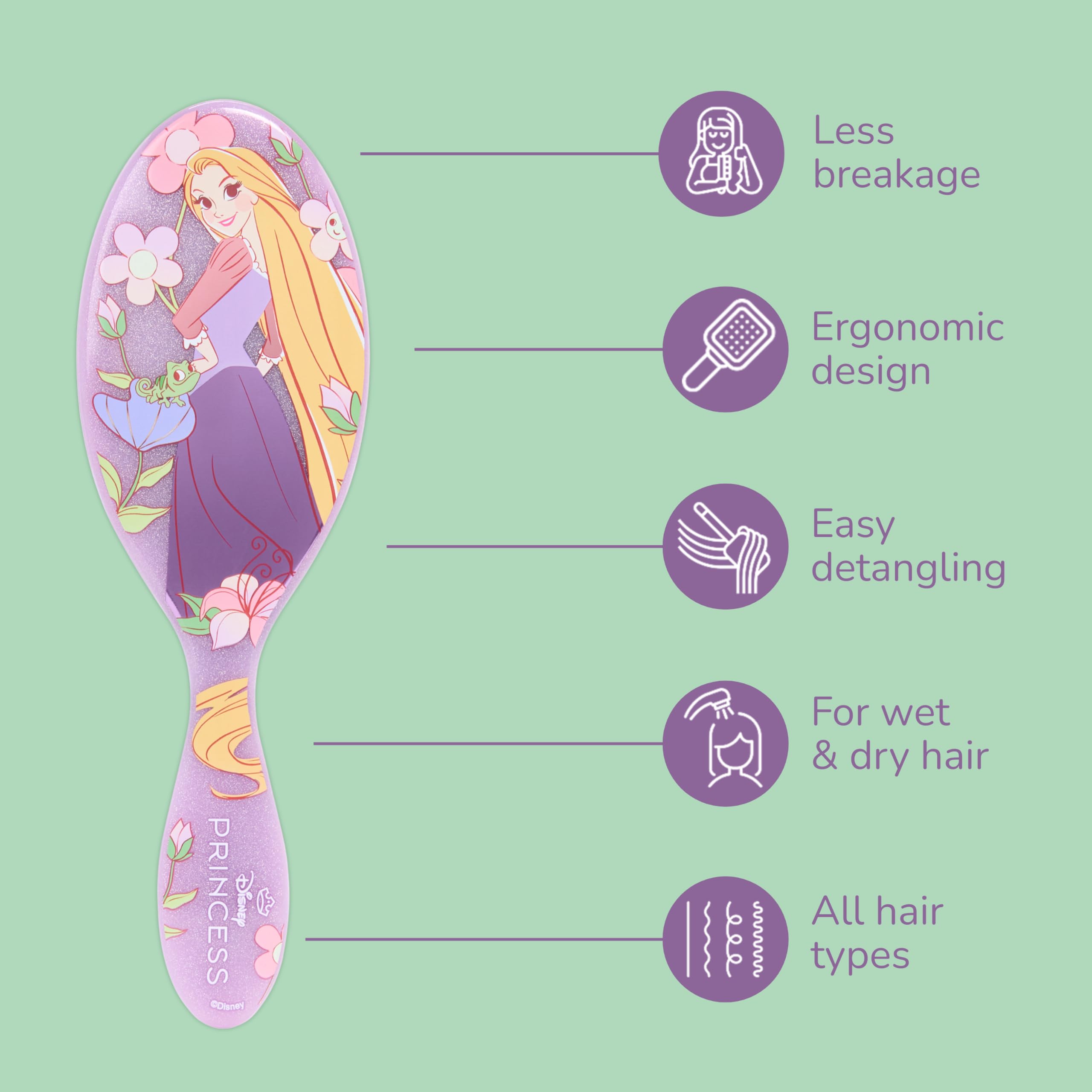 Wet Brush Disney Princess Rapunzel Original Detangler Hair Brush, Pain-Free Knot Removal, Flexible Bristles Detangle Wet or Dry Strands, Works on All Hair Types, Ergonomic Handle, Reduces Breakage